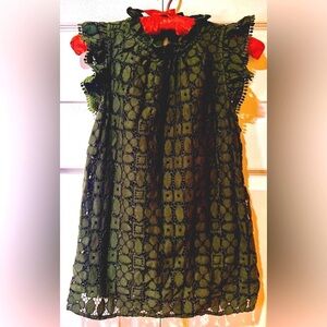 Maeve by Anthropologie Eyelet Flutter Sleeve Top. Forest Green Size 0. EUC