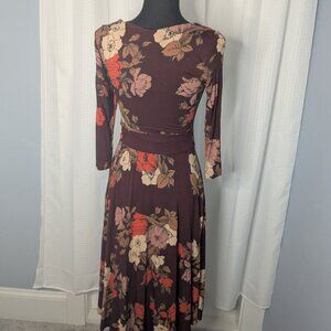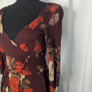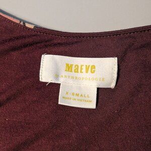 Maeve by Anthropologie Faux Wrap Dress, Size XS, Burgundy with floral design