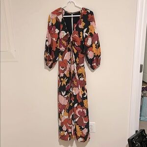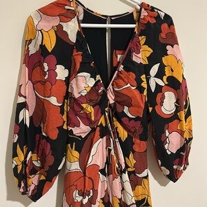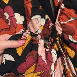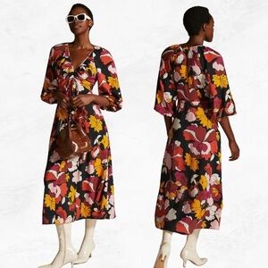 Maeve by Anthropologie Floral Deep V Ruched Midi Dress
