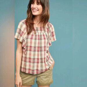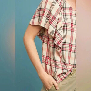 Maeve by Anthropologie Flutter Sleeve Priscilla Plaid Blouse Size XS