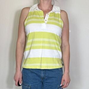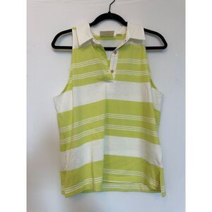 Maeve by Anthropologie Green and White Striped Collared Sleeveless Top Sz Medium