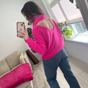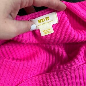 Maeve by Anthropologie Hot Pink Cutout Back Turtleneck Sweater Size Medium. Excellent condition, like new. Bright pink. Cutout detail at back. Ribbed knit material. Oversized fit.