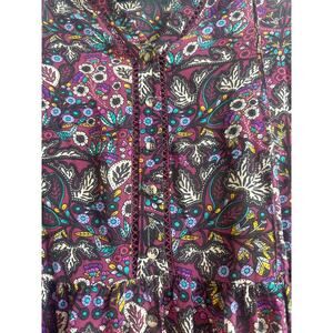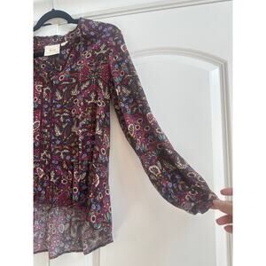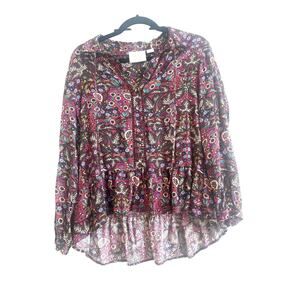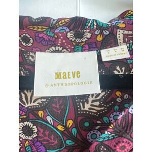 Maeve by Anthropologie Janie Button Front Top Burgundy with Floral Design