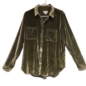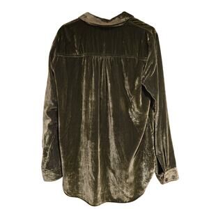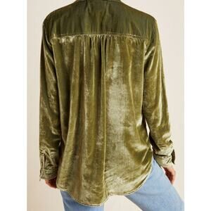 Maeve by Anthropologie Karina Green Velvet Button-Up Relaxed Fit Shirt, Size 8