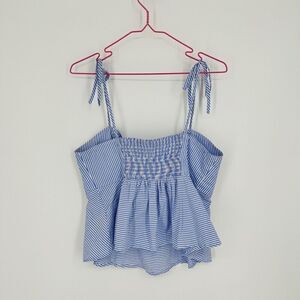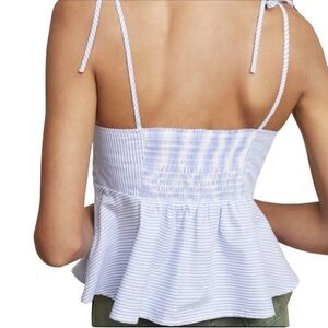Maeve by Anthropologie Knot Front Peplum Tank Top Tie Strap Striped Blue Size 8