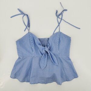 Maeve by Anthropologie Knot Front Peplum Tank Top Tie Strap Striped Blue Women’s Size 8