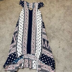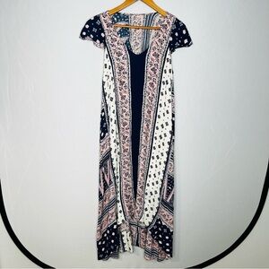 Maeve by Anthropologie Maeve Summertide Cape High-Low Swing Dress. Size X-Small. Please see photos for measurements and material content. Good Pre-Owned Condition.