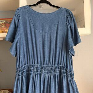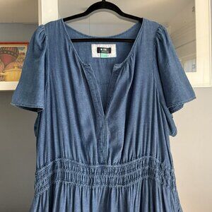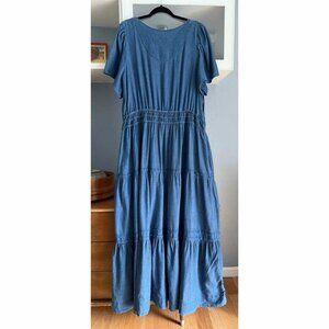 Maeve by Anthropologie Maxi Dress Somerset Chambray Tiered Smocked Boho