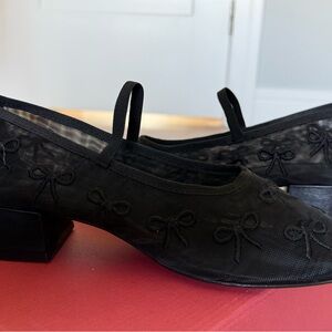 Maeve by Anthropologie Mesh Bow Black Block Heel
