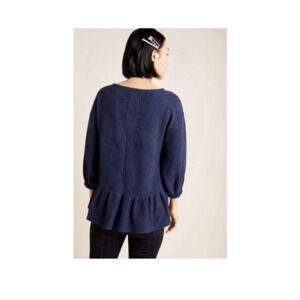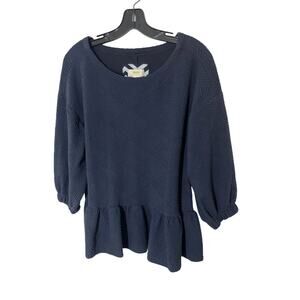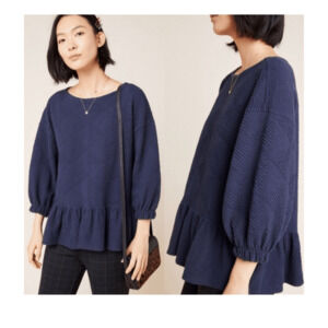 Maeve by Anthropologie Mikayla Peplum Lagenlook Minimalist Preppy Navy Top SZ S