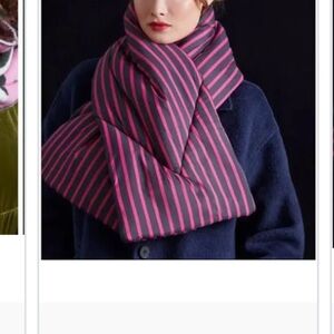 Maeve by Anthropologie Navy & Purple Striped Quilted Puffer Scarf, Versatile NWT