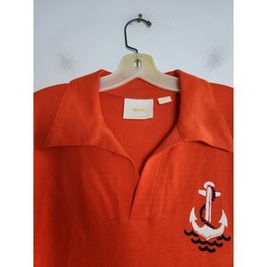 Maeve by Anthropologie "Newport" Orange/Red 100% Cotton Polo Top size Medium