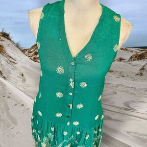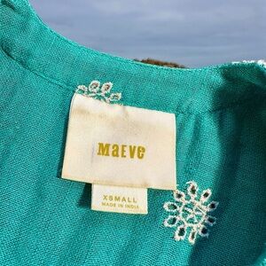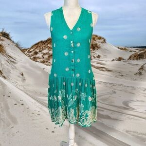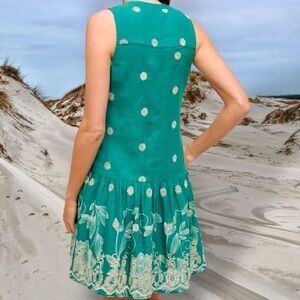 Maeve by Anthropologie ‘Pippa’ Teal Green Floral Eyelet Linen-Blend Swing Dress