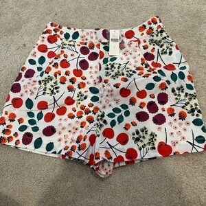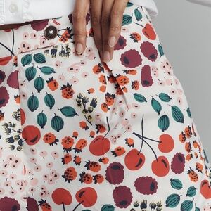 Maeve by Anthropologie Pleated Poplin Shorts in Red Pattern 2 NWT
