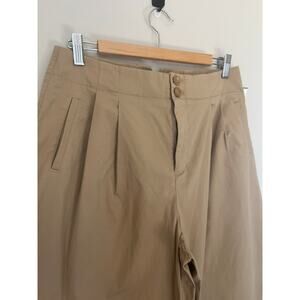 Maeve by Anthropologie Pleated Wide Leg Cropped Ankle Pants in Beige Womens sz 8