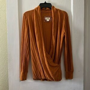 Maeve by Anthropologie Rafela Hacci Faux Wrap Long Sleeve Sweater Top