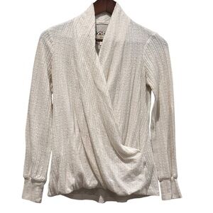 Maeve by Anthropologie Rafela Hacci Surplice Ivory Top Casual Cozy Size X Small