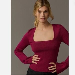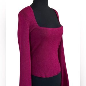 Maeve by Anthropologie Raspberry Pink Square Neck Sweater Sz M Long Bell Sleeves
