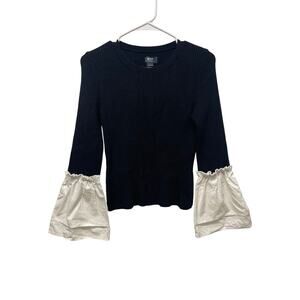 Maeve by Anthropologie Ribbed bell-sleeve sweater top black size small