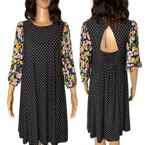 Maeve by Anthropologie Sawyer Polka Dot Floral 3/4 Sleeve Dress Black Size XS