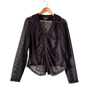 Maeve by Anthropologie Sheer Lace Collared Buttondown Top 1X Plus Sexy Goth