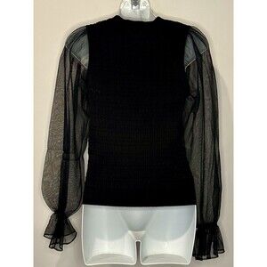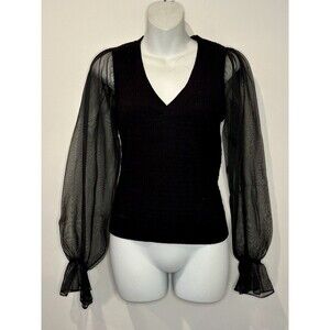 Maeve by Anthropologie Sheer Sleeve Black V-Neck Sweater Size S Small EUC!!!
