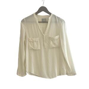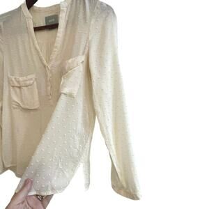 Maeve by Anthropologie Size 2 Cream Swiss Dot Long Sleeve Button Down Blouse