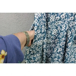 This is a Maeve by Anthropologie Sweetheart Fit and Flare Dress that is a size Medium. It has pockets and is lined. It is 100% Cotton and the lining is 100% Modal. It has wide straps that criss-cross in the back. Laying flat, it measures: Armpit to armpit-16.5" and the length is 35". In great condition.