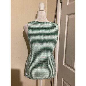 Maeve by Anthropologie Tank Top Womens Small Green White Striped Textured Knit