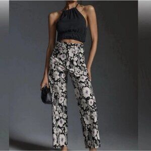 Maeve by Anthropologie The Colette Black White Floral Crop Wide Leg Pants Sz 29