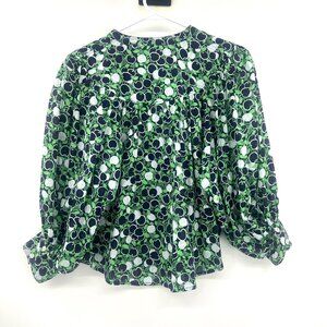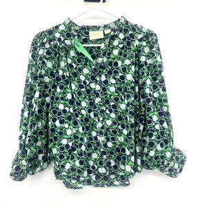Maeve by Anthropologie Whimsy Button Down Green Black Blouse Women's XS
