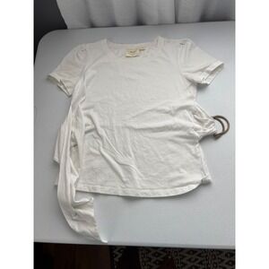 Maeve by Anthropologie White Cotton Ring Detail Short Sleeve Tee Top
