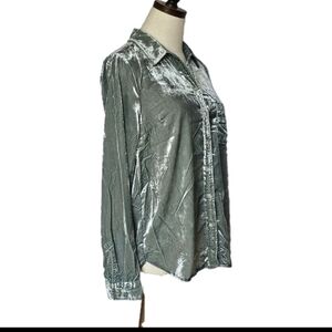 Maeve by Anthropologie Women’s 4 Sage Green Velvet Long Sleeve Buttondown Shirt