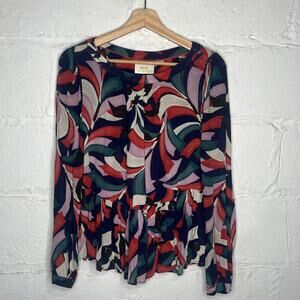 Maeve by Anthropologie Women's Cheyenne Peplum Long Sleeve Abstract Print Viscose Blouse Size Small