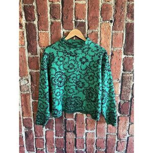 Maeve by Anthropologie Womens Green Floral Pattern Knit Sweatshirt Size Small