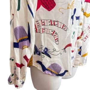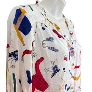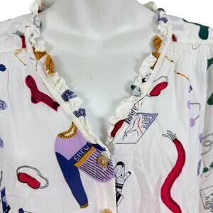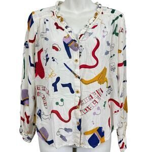 Maeve by Anthropologie Womens Long Sleeve Button Up Winter Print Shirt Top sz 2