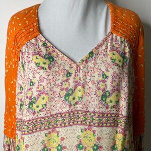 Maeve by Anthropologie Women's Orange Ceresco Peasant Long Sleeve Top Small