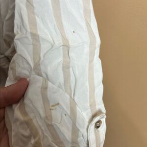 Maeve by Anthropologie Women’s Size Large White & Tan Button Up High/Low Blouse