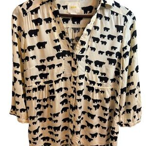 Maeve by Anthropologie Woodland Walk Black and Cream 3/4 Sleeve Blouse
