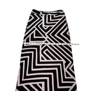 Great condition Maeve by Anthropologie geometric stretchy maxi skirt. Pull-on. Colors are black and cream. Fully lined. This is a very stretchy, soft, jersey like material.