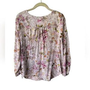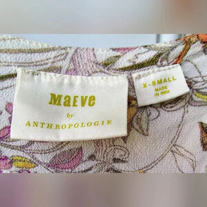 Maeve by Anthropology Floral Pernille Drape Tie Sleeves Boho Peasant Blouse, XS, 100% Rayon, made in India, in excellent pre-loved condition