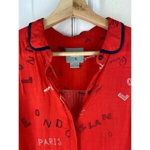 Maeve by Anthropology Women's Size 4 Red Paris London Button Up Blouse. Pre-owned in good condition.