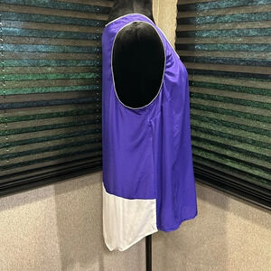 Maeve by Anthropology women’s 100% silk tank. Royal blue/ purple with white color block scoop neck top. High/low split sides. Size 12. NWT