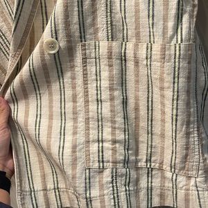 Tan, yellow, navy striped linen coat. Only worn once. Comes from a smoke free and pet free home. Bought from Anthropologie