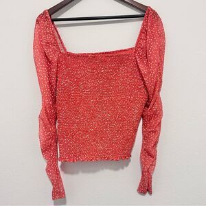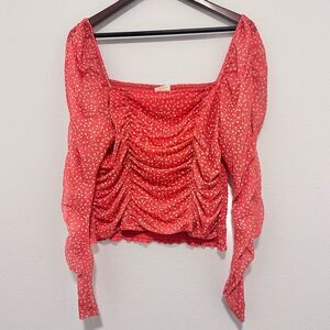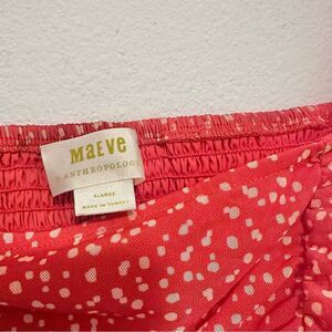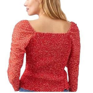 Maeve for Anthro Sheer Mesh Ruched Smocked Top Red Dot Size XL