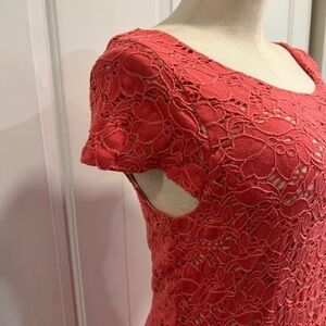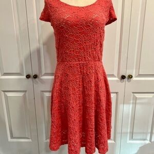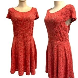 Maeve for Anthropologie Lace Over Fit and Flare Cup Sleeve Dress
