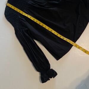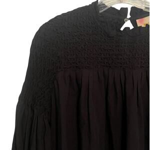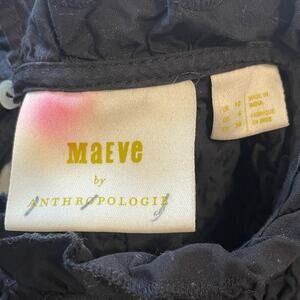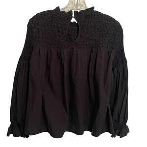 Maeve for Anthropologie Modern Peasant Top Womens Size 6 Black Smocked Cotton