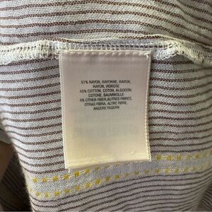 Effortlessly feminine and breezy, this Maeve by Anthropologie “Visby” wrap blouse is a standout piece. Designed with delicate vertical stripes in soft brown and yellow and a flattering surplice neckline, it features flounce 3/4 sleeves, a self-tie waist, and lightweight woven fabric that drapes beautifully. Perfect for summer days, brunch dates, or a vacation-ready wardrobe.