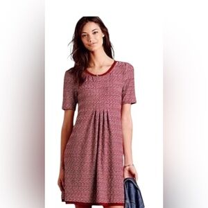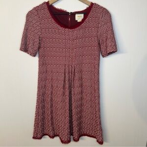 Maeve from Anthropologie Dora Wavy Pattern Red/White Chiffon Trim Pleated Front Dress, Size Small.