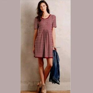 Maeve from Anthropologie Dora Wavy Pattern Red/White Chiffon Trim Dress Sz Small